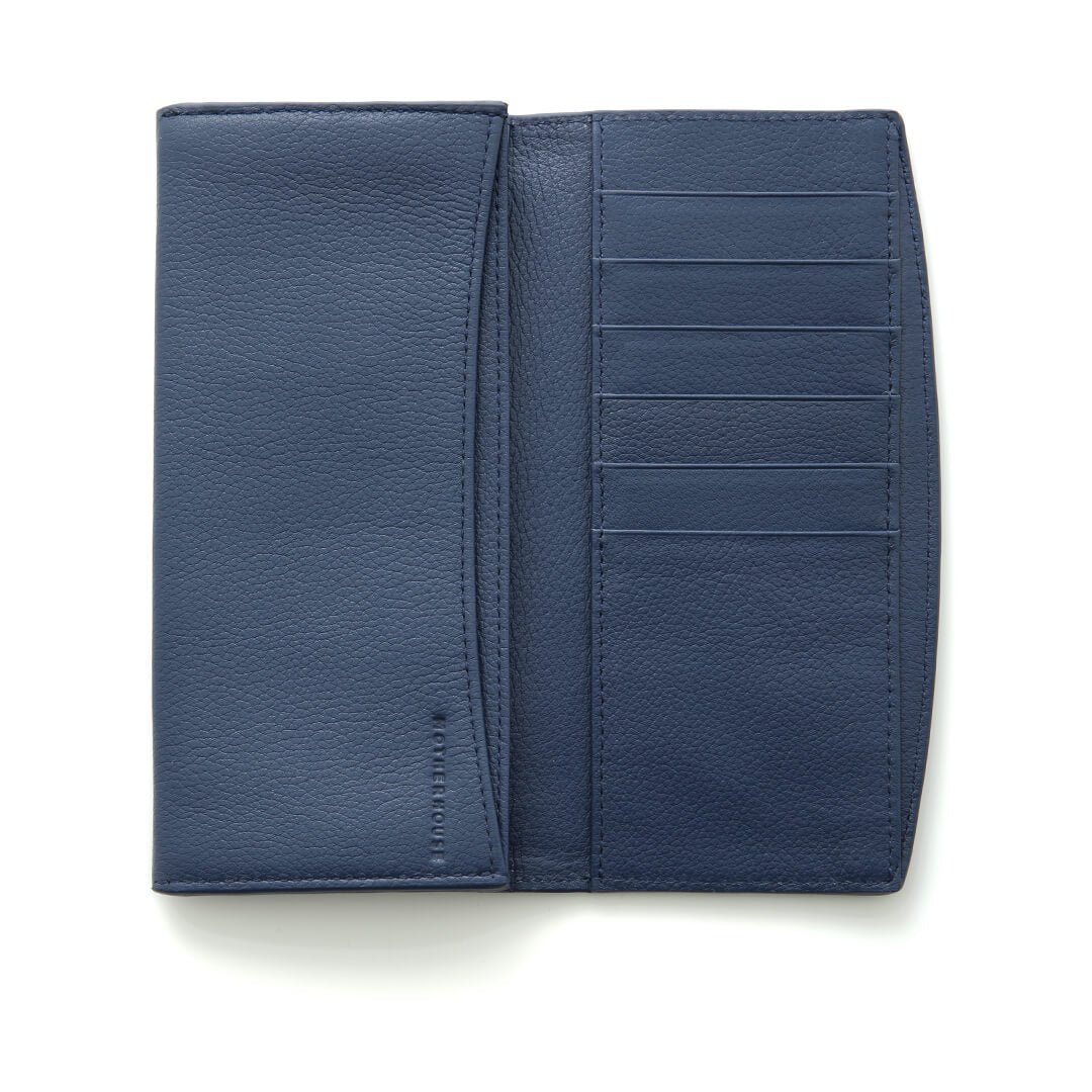 A long wallet with comfortable soft leather. Smile-like arches accentuate the design.