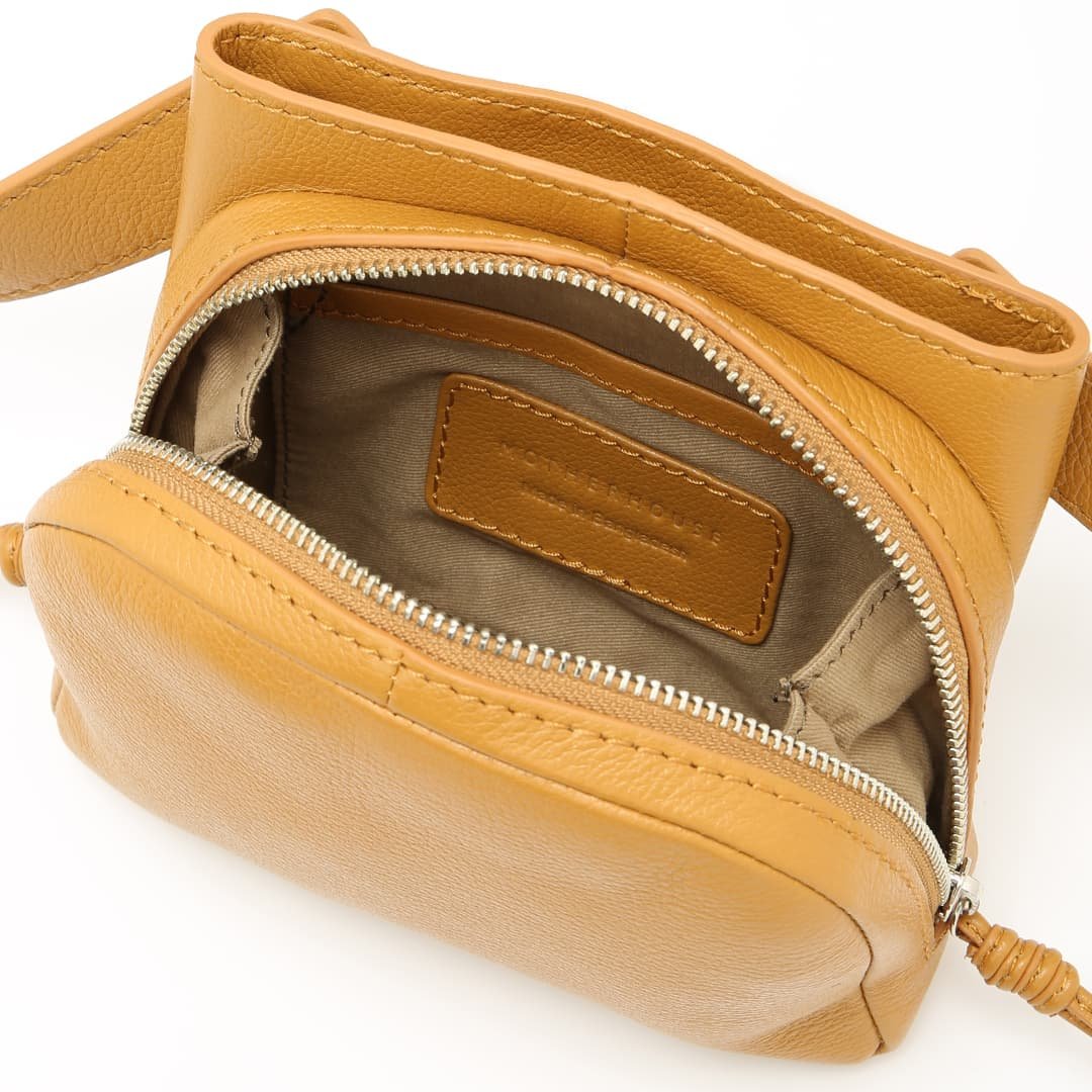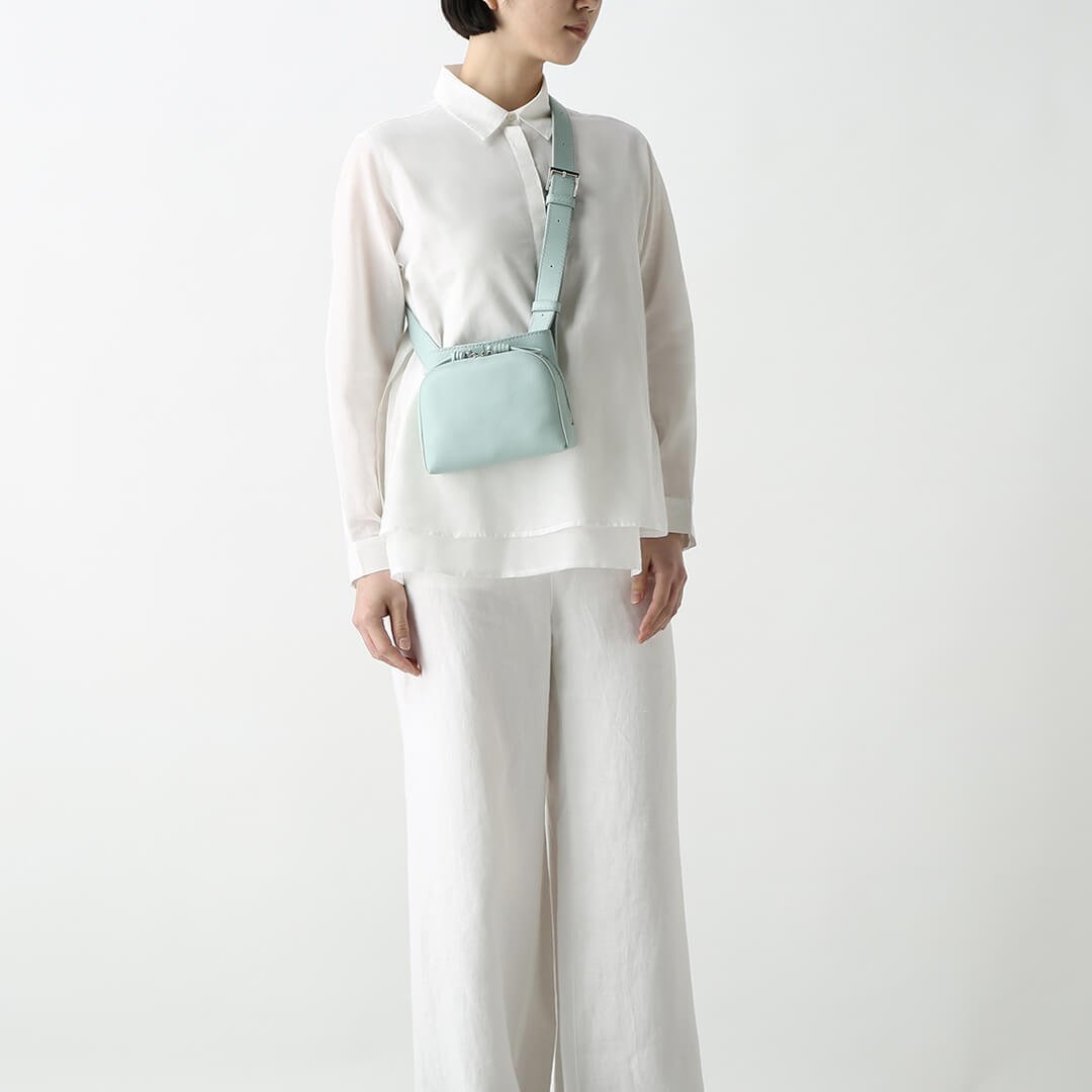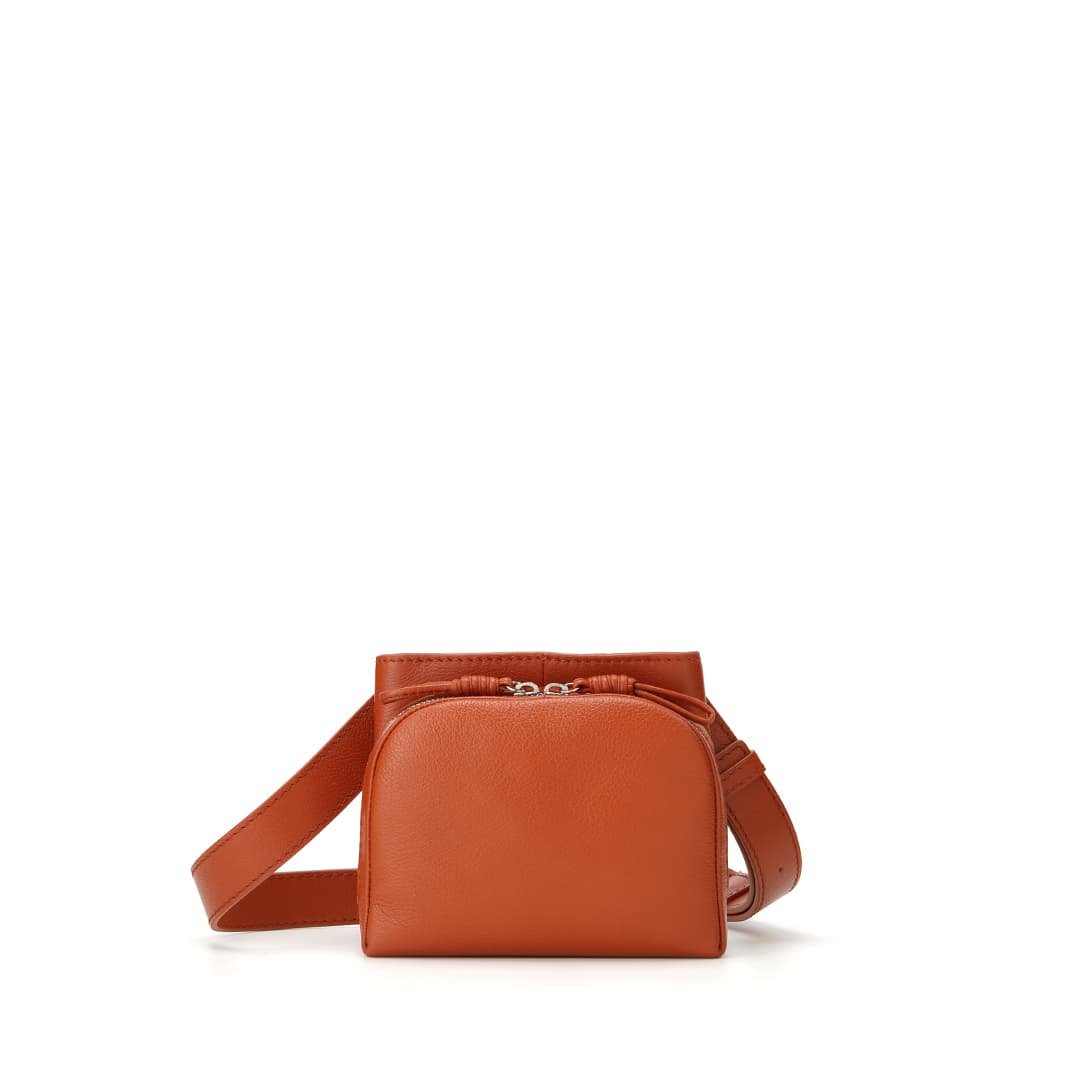 The shoulder strap can rotate 360 degrees. allowing you to use the Sora in many ways. This strap structure allows you to use it as a shoulder bag and a waist pouch. The soft leather and thick strap fit your body nicely. making it comfortable to use and light-hearted. adding color to your outings.