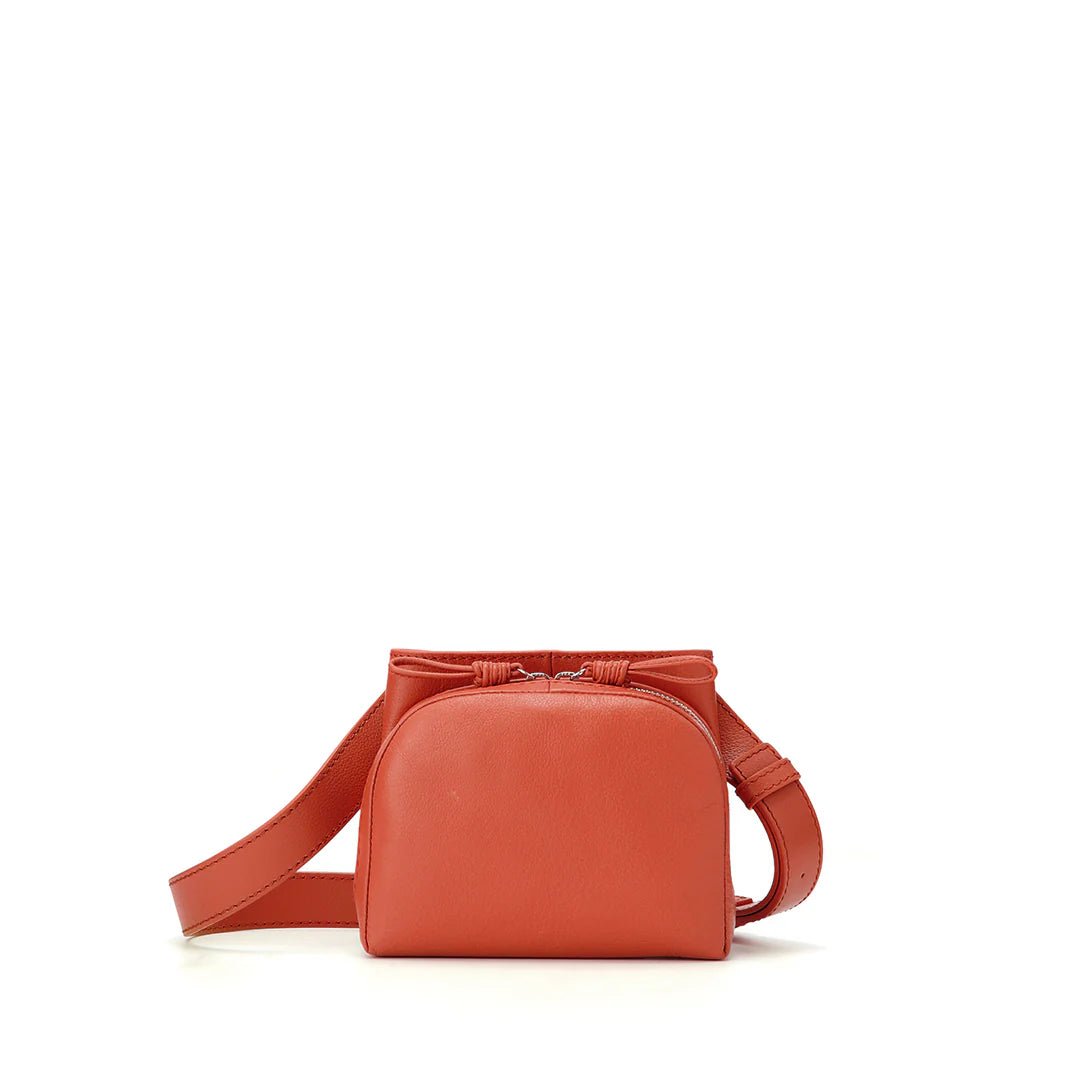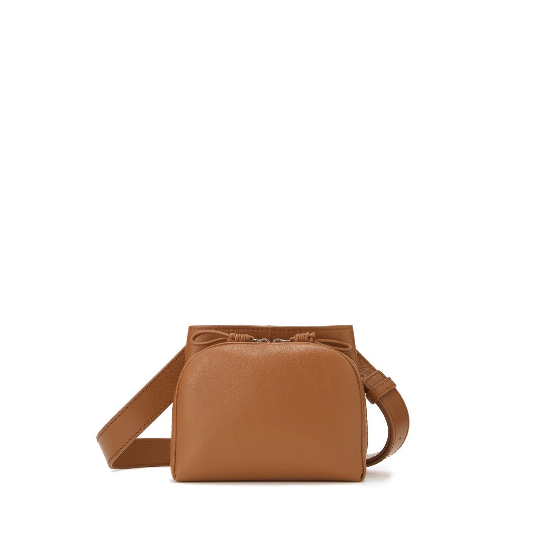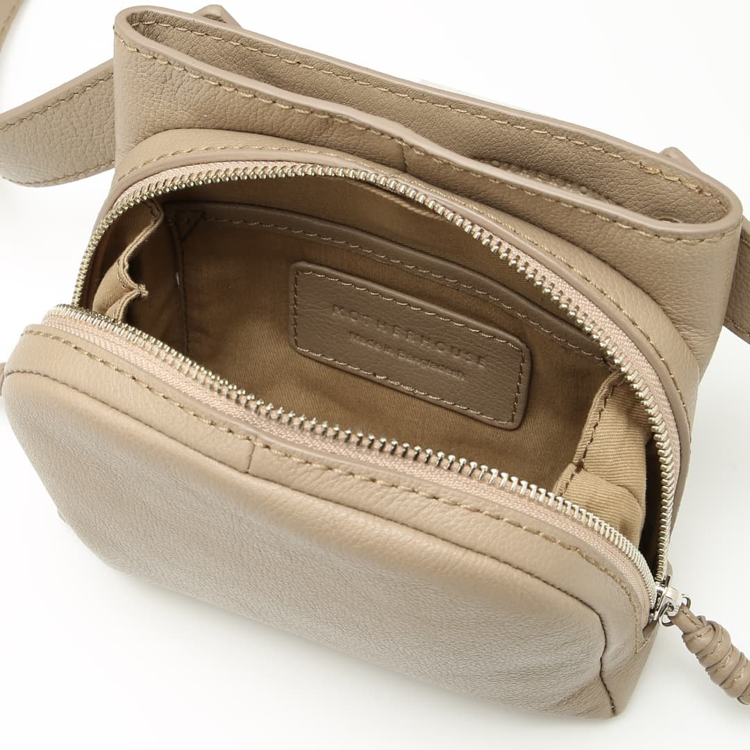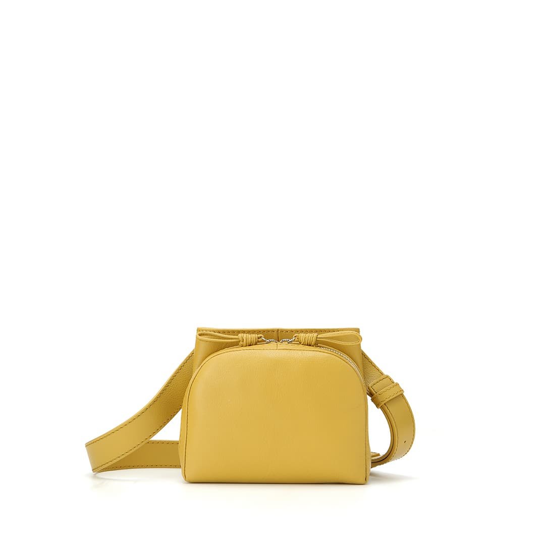 The shoulder strap can rotate 360 degrees. allowing you to use the Sora in many ways. This strap structure allows you to use it as a shoulder bag and a waist pouch. The soft leather and thick strap fit your body nicely. making it comfortable to use and light-hearted. adding color to your outings.