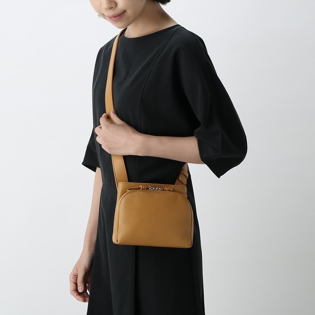 Sora has a unique shape that combines a circle and a square. It has an open pocket that you can quickly access like a pocket on your clothes. and it is a 2-way bag that can be used as a shoulder bag or a waist Pouch. The shoulder strap is designed to move freely. so you can use it according to your own style. The small S size has a compact design that fits in with any style.